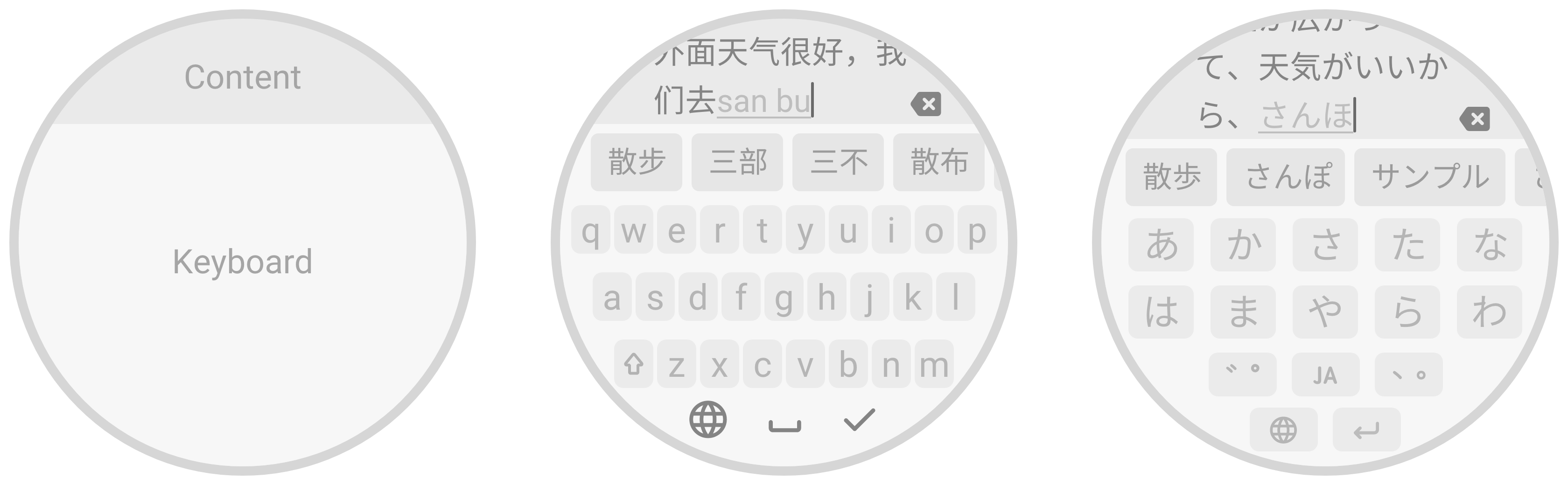 - Multi-device adaptation: the keyboard must adapt to various shapes (round, square) and different screen sizes to ensure a consistent and usable input experience across devices.